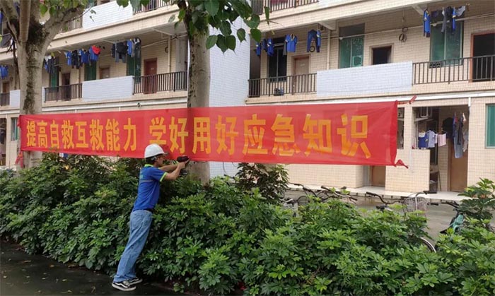 此外,我司在車間、飯堂與生活區張貼海報、橫幅,時刻向全體員工宣教安全知識,利用LED屏幕與多媒體投屏滾動播放安全守則、放映視頻動畫,增強全體員工的安全防范意識。
